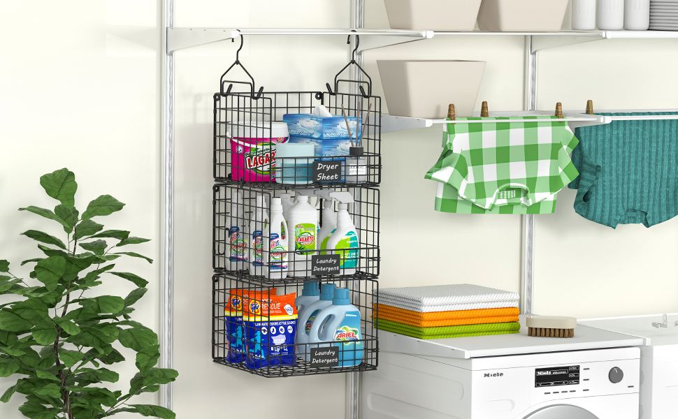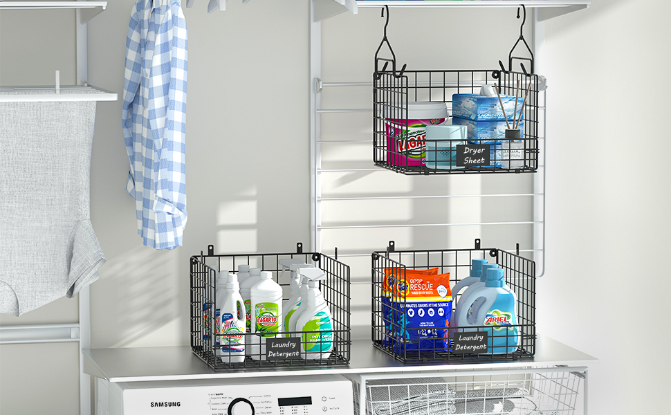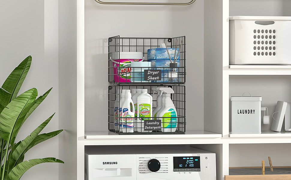 【Solid iron wire】 Metal wire basket made of iron,adopts a buckle structure, with good bearing capacity. Compared with cloth, it is not easy to rot.It can store heavy duty laundry detergent liquid soap, dryer sheet holder, laundry containers, clothes, laundry decor, softener dispenser,etc..